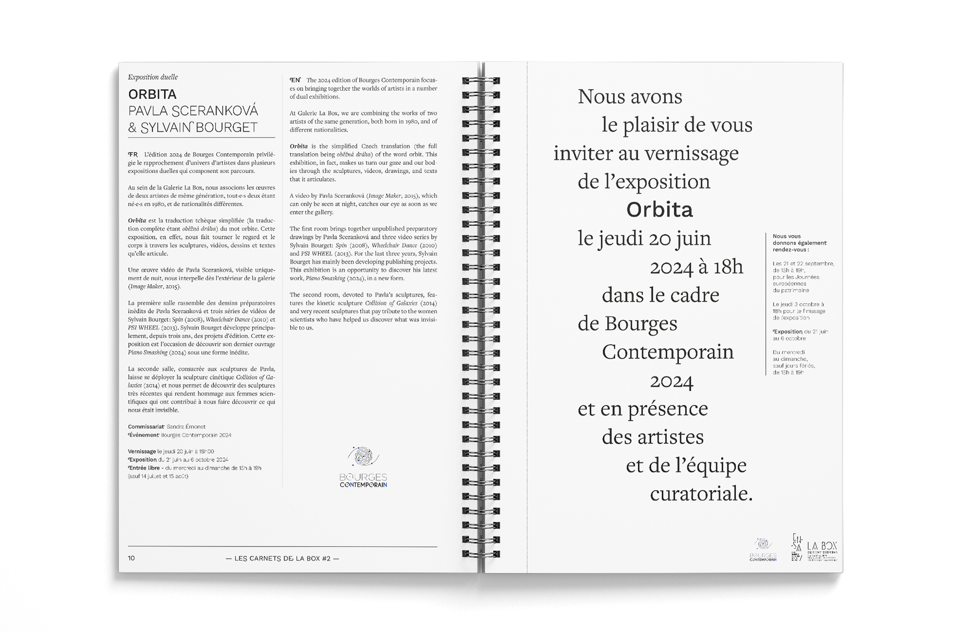 Deuxième édition du catalogue et agenda d'exposition de la galerie d'art La Box de Bourges. En collaboration avec l'Ensa de Bourges.